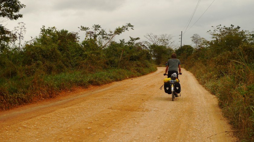 Feeling the strain of the 170 km ride from Palenque to the border town of Frontera Corozal. With the over cast day it made cycling a little easier. We weren’t sure of places to stay along this road but for other cyclists coming this way there were hotels at around Km65 and Km72 and lots of friendly villages to camp.