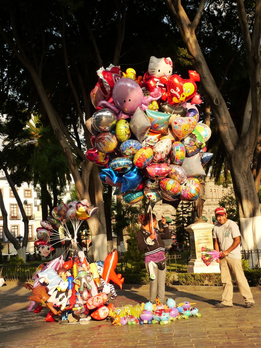 In every square in every city in Mexico there are people selling balloons, some times we have seen up to 10 – 15 people selling all the same balloons.